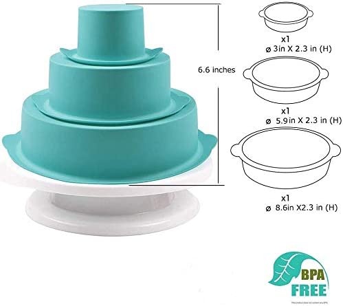 Webake round silicone baking birthday 3 tier cake layer tin cake pan,8 Inch, 6 Inch, 3 Inch