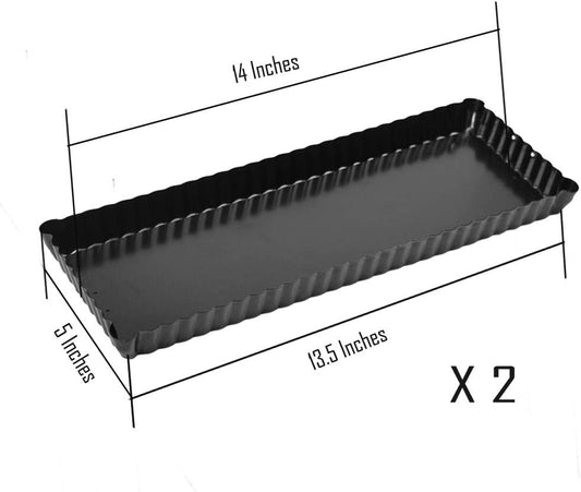 Webake 14 Inch carbon steel removable bottom non-stick rectangular baking tart pan,Pack of 2