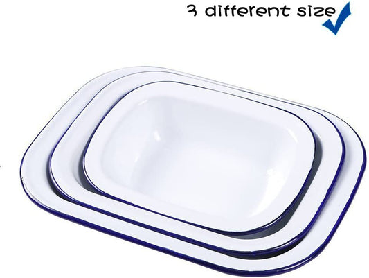 Webake enamelware 9x13 oblong cake baking dish lasagna pan food containers solid white with blue rim