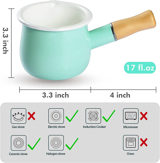 Webake 4 Inch 550ml half quart saucepan small enamelware cups with wooden handle