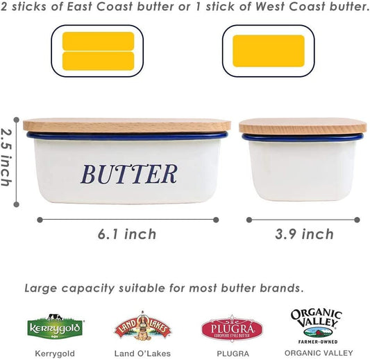 Webake 6.1x3.9 Inch Enamel Butter Dish with Lid and Butter Knife