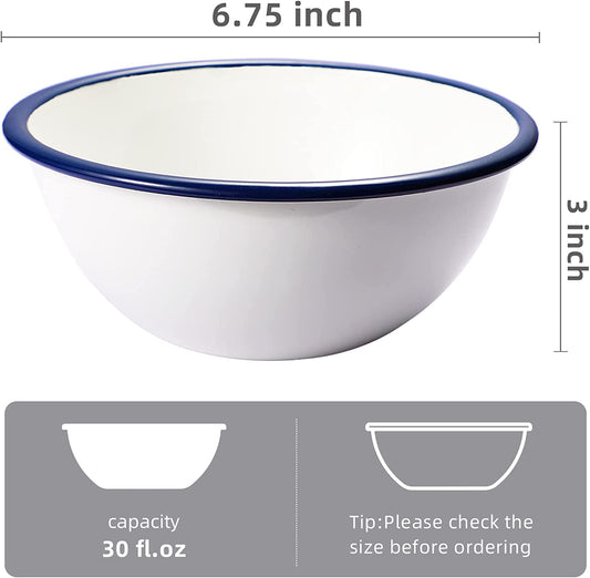 Webake 30 Ounces Round Deep Dish Farmhouse Pasta Enamel Cereal Bowls,Set of 2
