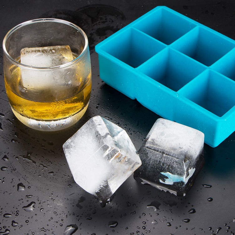 Webake 2 Inch blue square silicone whiskey ice cube tray mold,Pack of 2