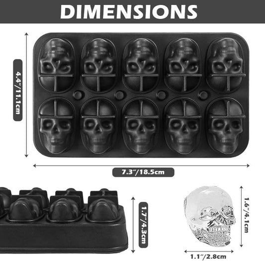 Webake 10 Cavity Halloween Silicone Skull Ice Cube Mold with Lid