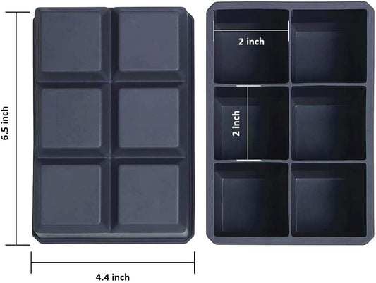 Webake 2 inch square silicone cocktails ice cube trays molds,2 pack (Grey)