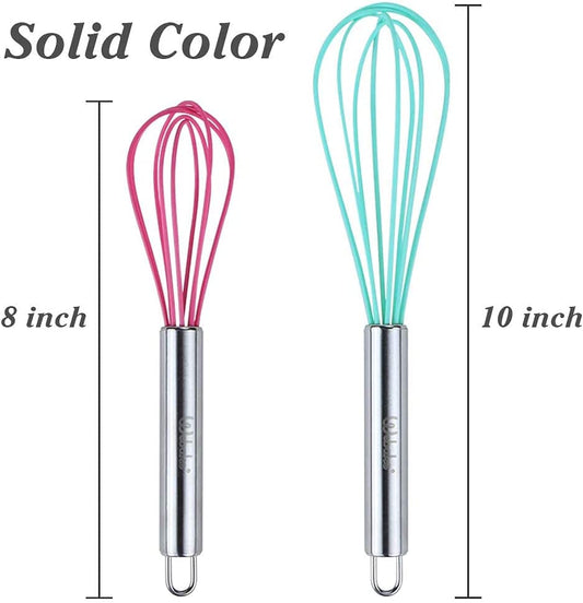 Webake 8 inch and 10 inch balloon nonstick egg beater silicone whisk with stainless steel handle,Set of 4