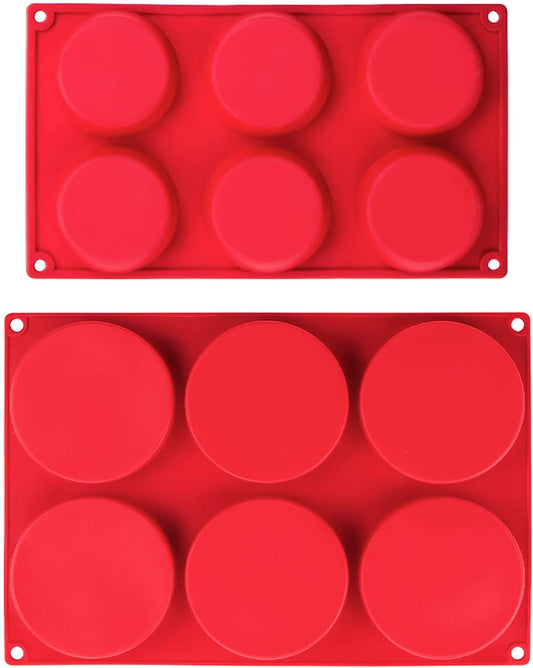Webake red silicone 3 Inch and 4 Inch round disc pan 6 cavity tart and resin coaster mold,Set of 2