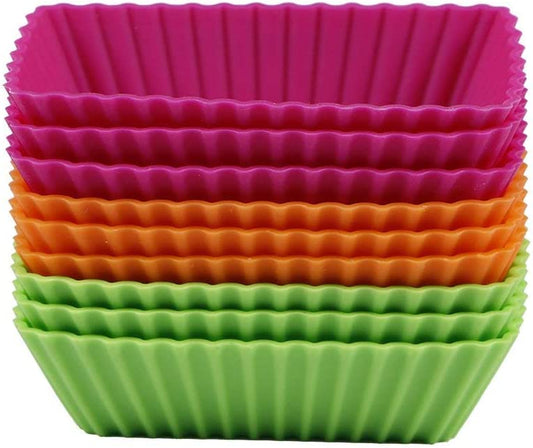Webake rectangular 4.3 Inch brownie nonstick silicone reusable mini cupcake liners,Pack of 12