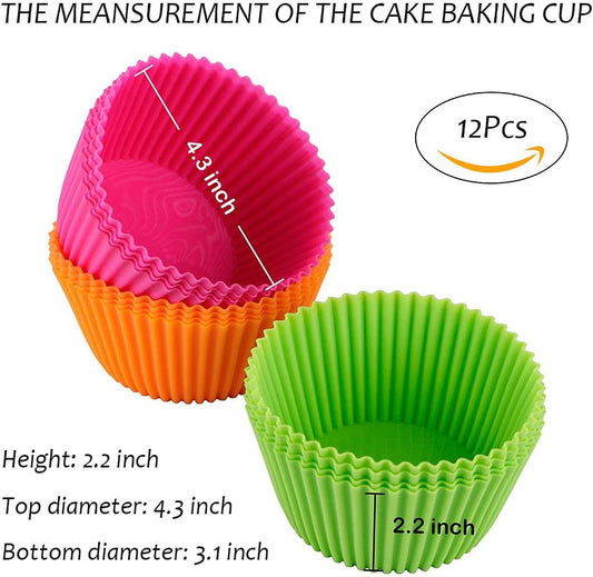 Webake 4.3 Inch silicone reusable non-stick cupcake molds,pack of 12