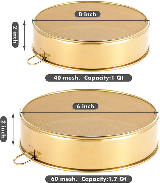 Webake 6-Inch 8-Inch Stainless Steel Sifter Round Flour Sieves Fine Mesh Strainer,Set of 2 (Golden)