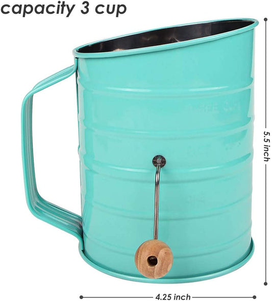 Webake flour sifter 3 cup stainless steel baking sifter with rotary hand crank