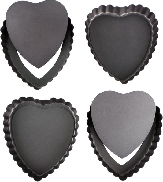 Webake 4.5x4 Inch Mini Heart Removable Bottom Valentine's Day Baking Tart Pan,Set of 4