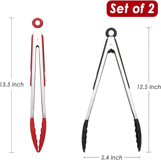 Webake 12 Inch stainless steel and silicone Kitchen Tongs in Pinch Test Grade,Set of 2,Black & Red