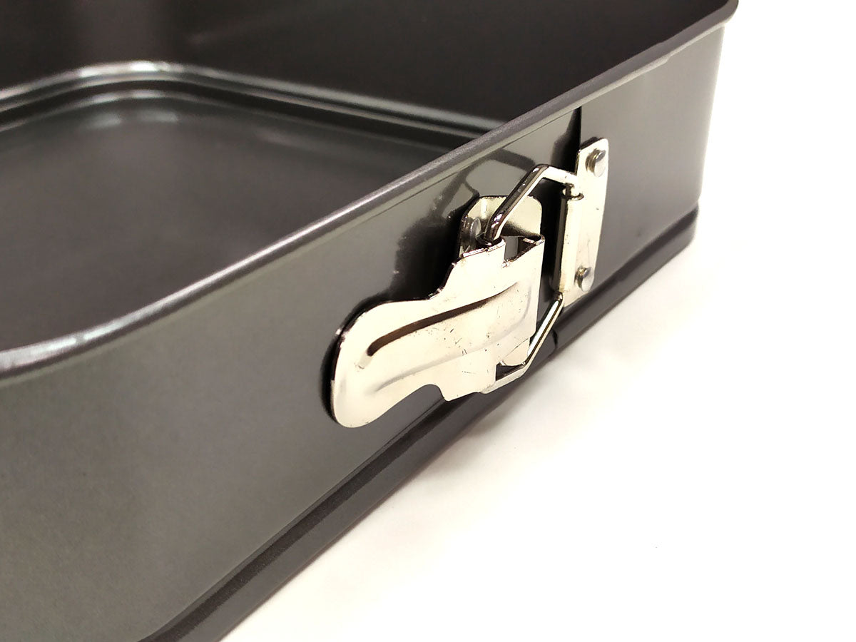- Spring latch and interlocking which securely holds form together offering a tight leak-proof seal, ideal for the water bath, and wrapping it in tin foil is recommended.