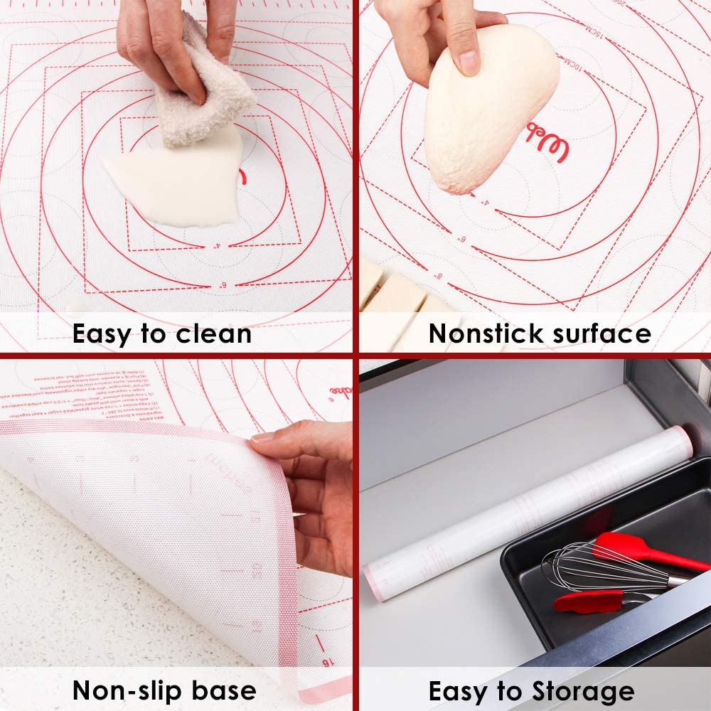 - Food Grade Material: Made from BPA-free silicone and reinforced with fiberglass. Heat resistant from -40 to + 230 ℃ (-40°F to 446°F). Safe to use in the oven or freezer. Lasts longer than flimsy alternatives and won’t rip, roll up at the edges, crinkle, or slide around.