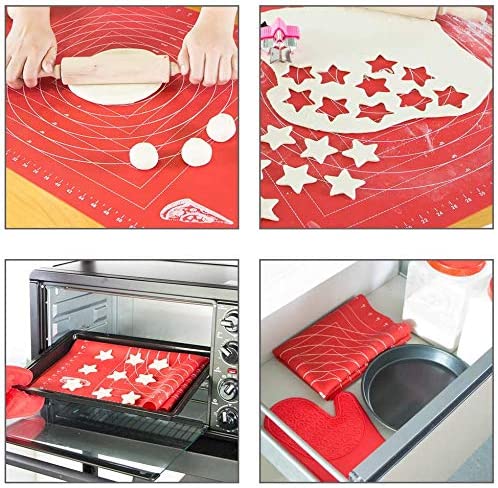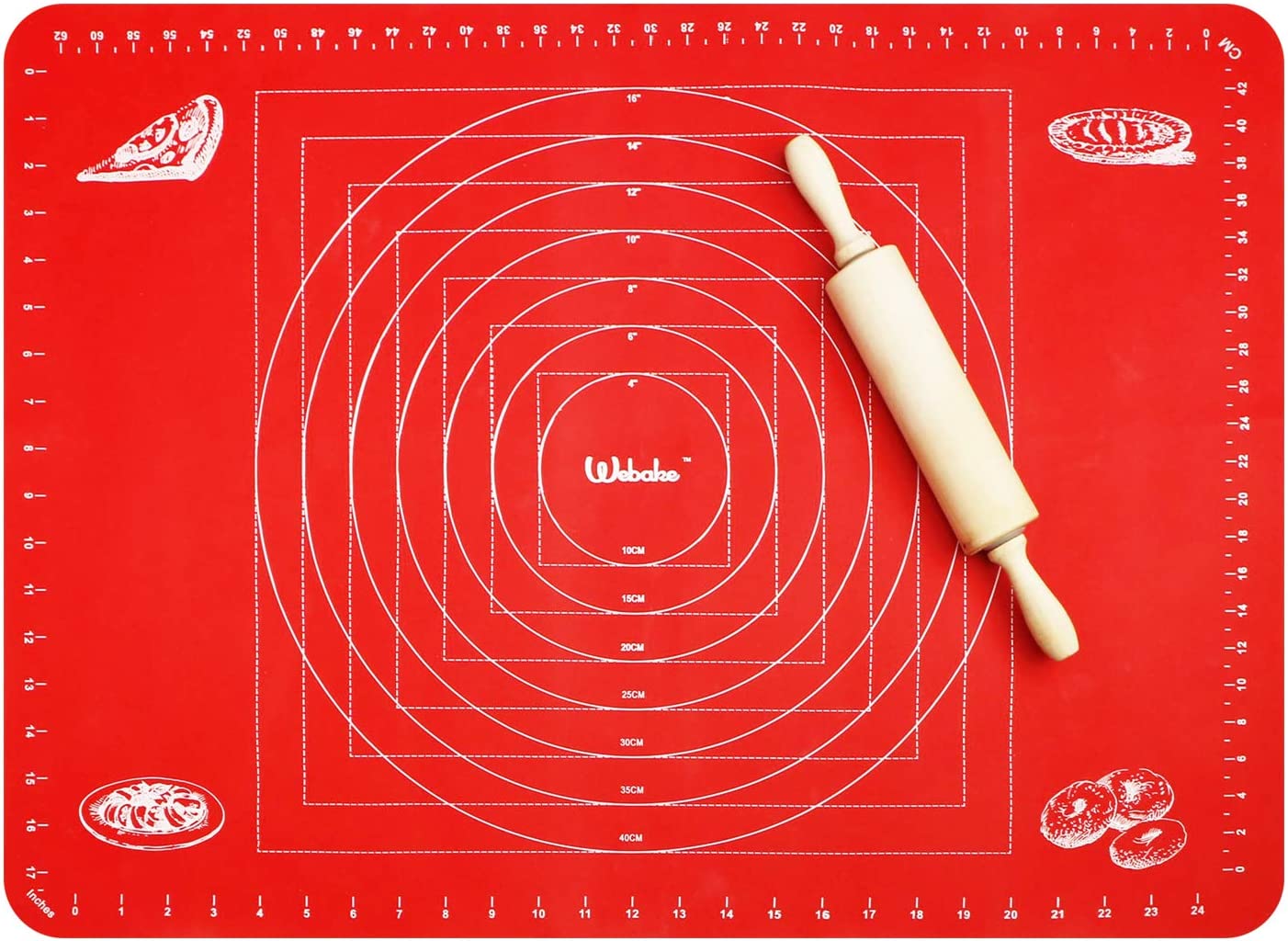 Webake 26 x 18 Inch non stick silicone pastry non slip countertop protector baking mat for rolling dough with measurements (Red)