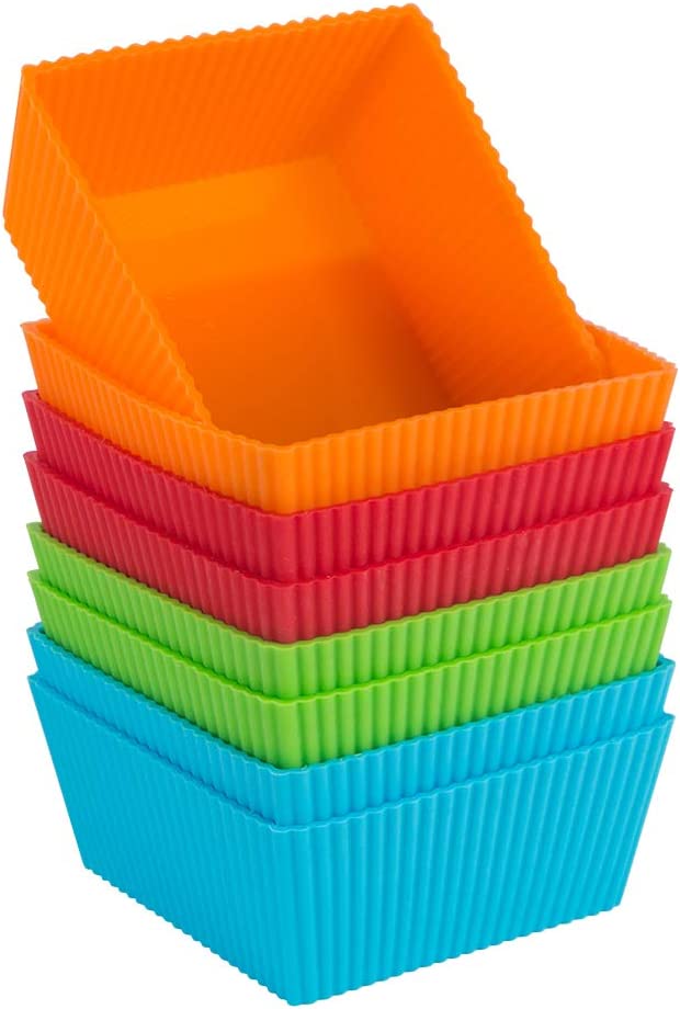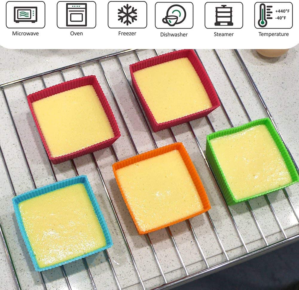 Webake 3.5 Inch reusable silicone square non-stick brownie cupcake mold,pack of 8