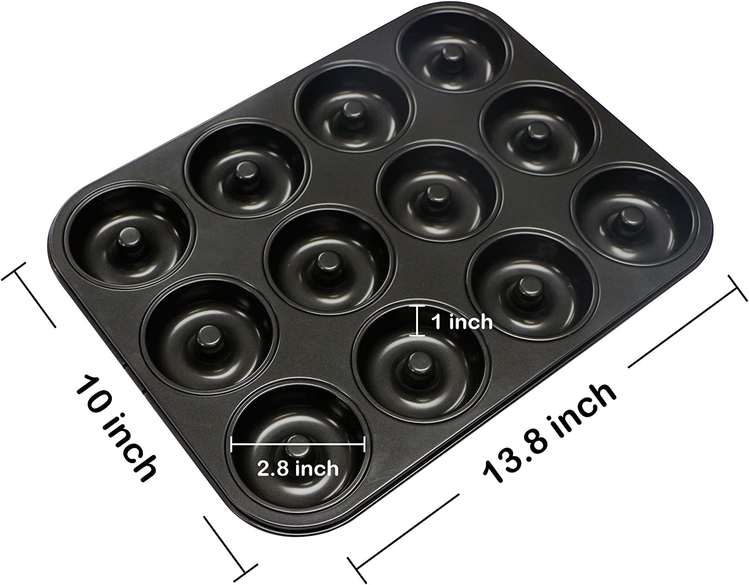 - Cavity Diameter 2.8 inch. Donut Baking Pan Size: 13.8" X 10" X 1".