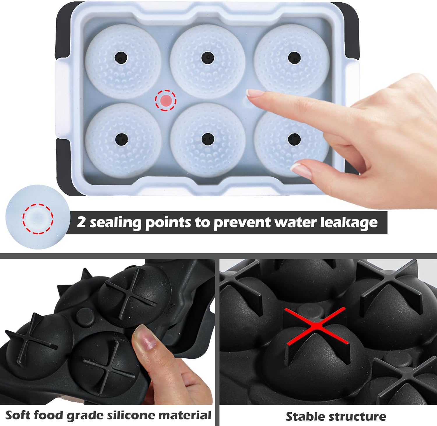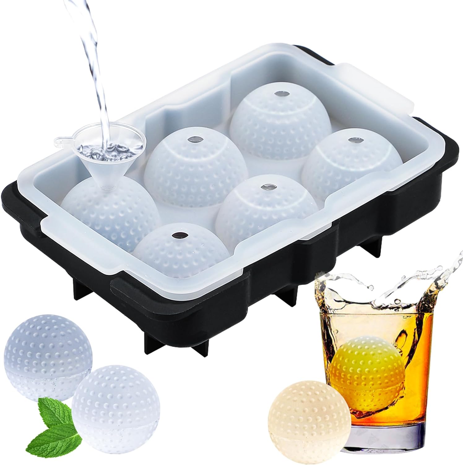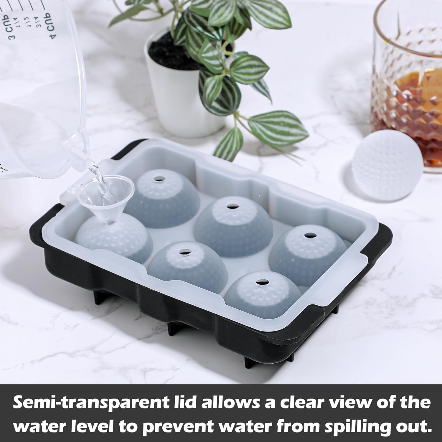 Webake Golf Ball Ice Molds with Lid & Funnel 6 Holes Round Sphere Ice Ball Maker