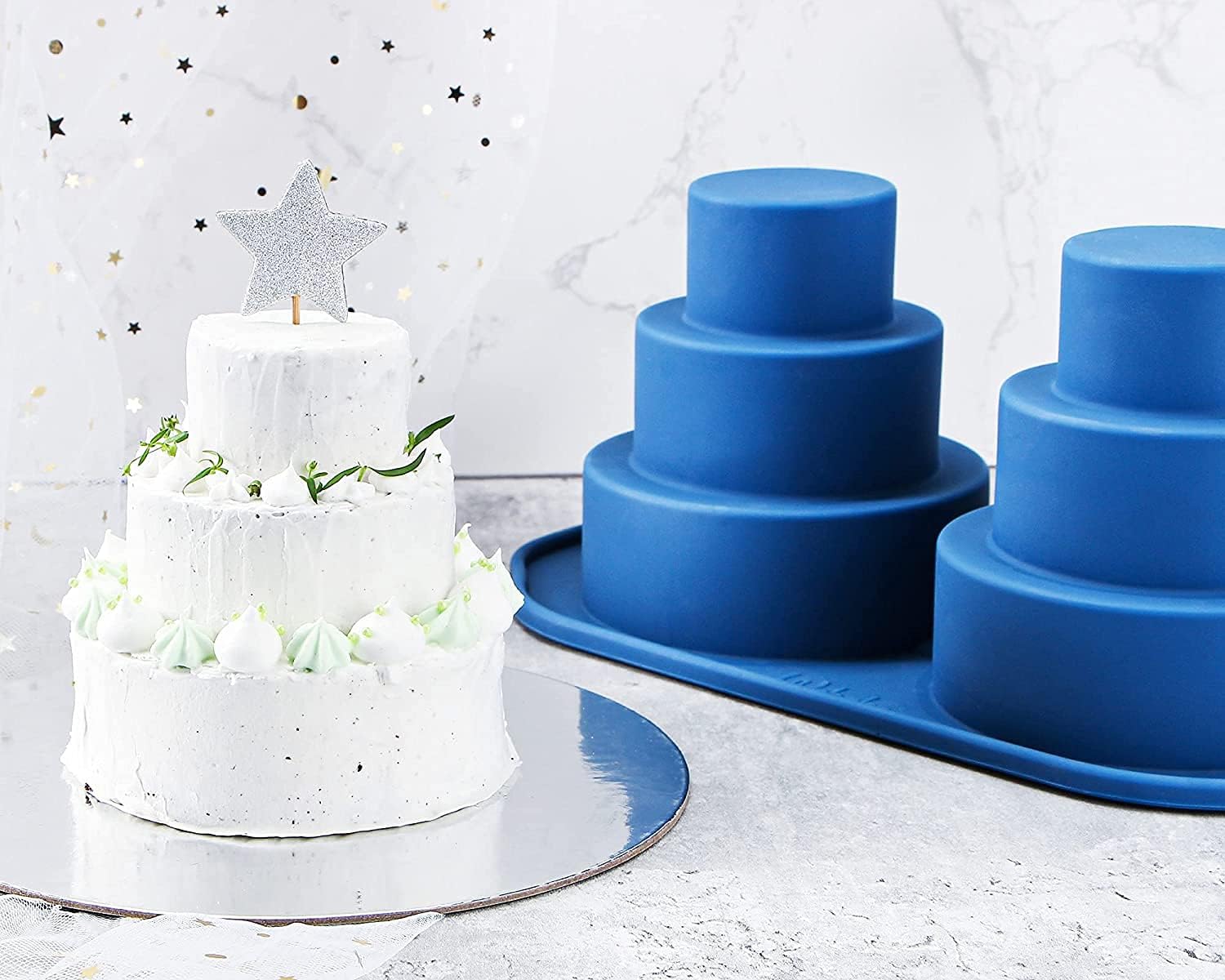 - 3 TIERED IN ONE SILICONE MOLD – One mold has 2 cavities and you will get 2 molds in one package that you can bake 4 mini cakes one time! The mini silicone pan is designed to create beautiful three-tiered mini cakes/cupcakes that can be used to decorate for any occasion, like wedding anniversary parties birthday bride showers, or a family dessert treat.
