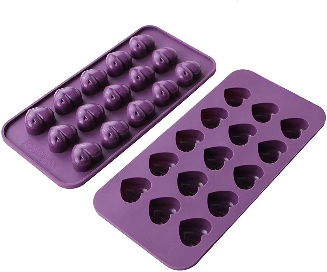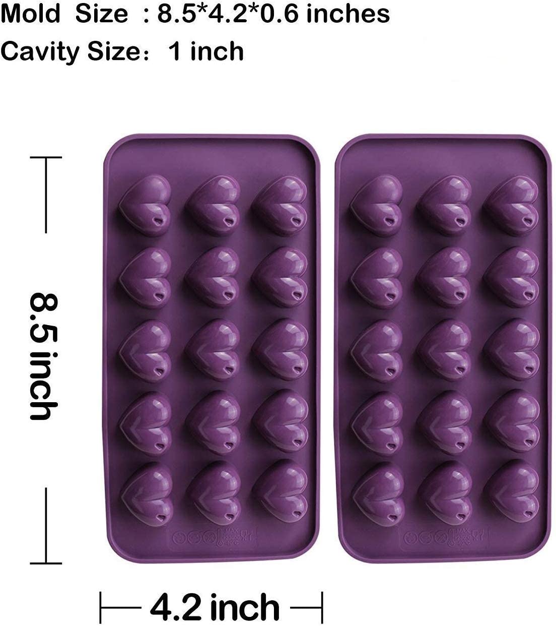 Webake Silicone 15 Cavity Silicone Heart Candy Chocolate Mold,Pack of 2 (Purple)