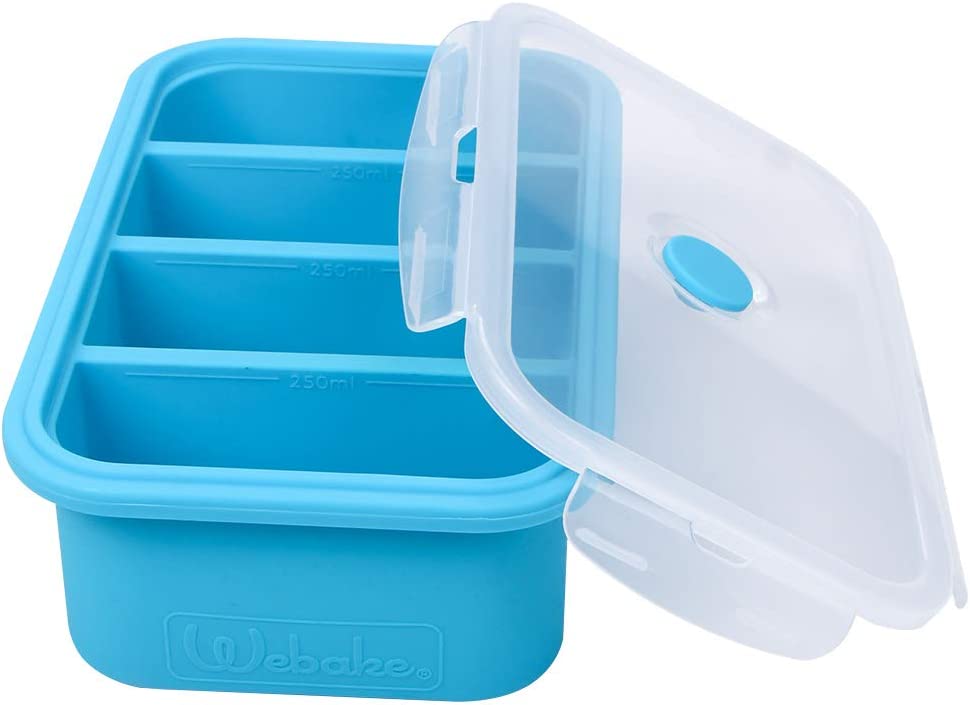 Webake silicone freezer 1 cup portion ice cube tray with lid,BPA Free