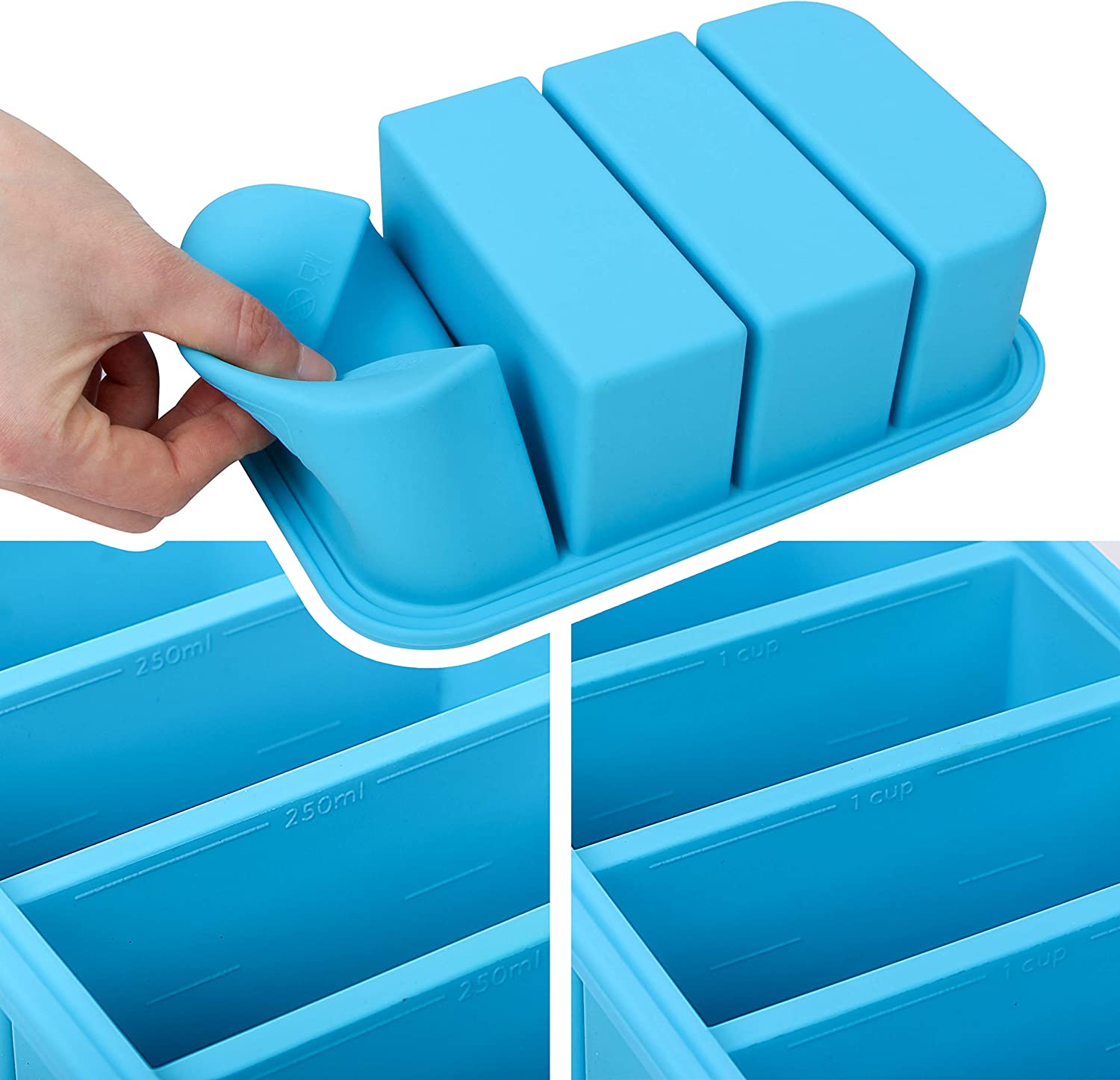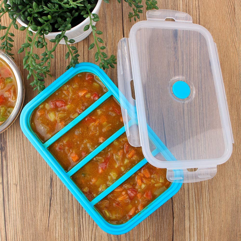 - With the clear tight lid, no worry about liquid sloshing out when you're putting the trays in the freezer. When the sauce is frozen, Just pop the cubes out of the trays.