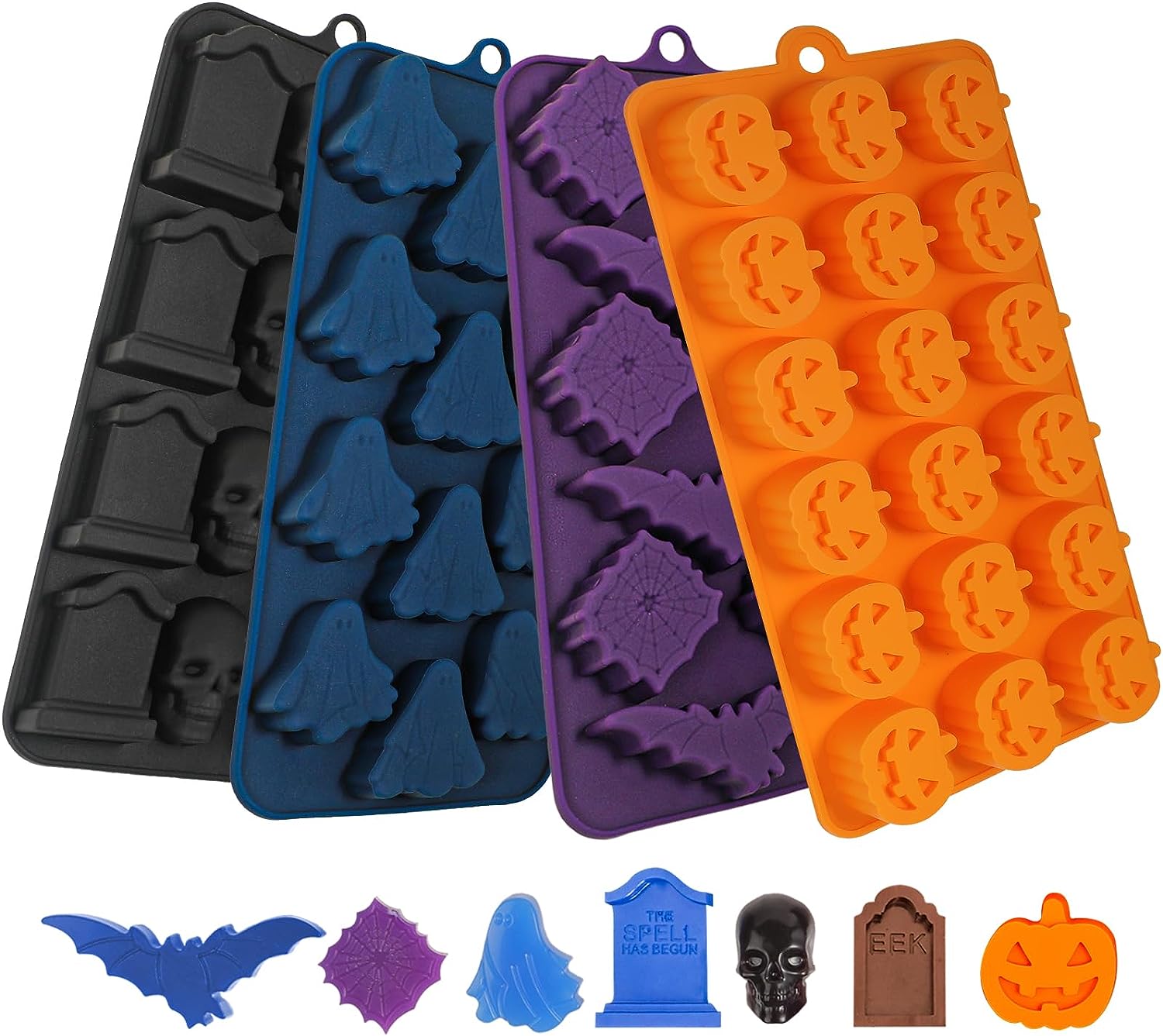 Webake Silicone Halloween Candy Mold with Pumpkin Skull and Tombstone Ghost Bat and Spider (4pcs)